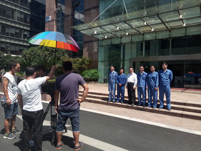 這一幕發生在東天虹環保的杭州總部。為了更好的推廣宣傳東天虹,公司在三月起動了宣傳片拍攝事宜。經過四個多月的前期準備,在七月中旬正式開始取景拍攝。