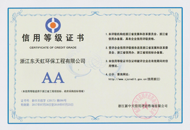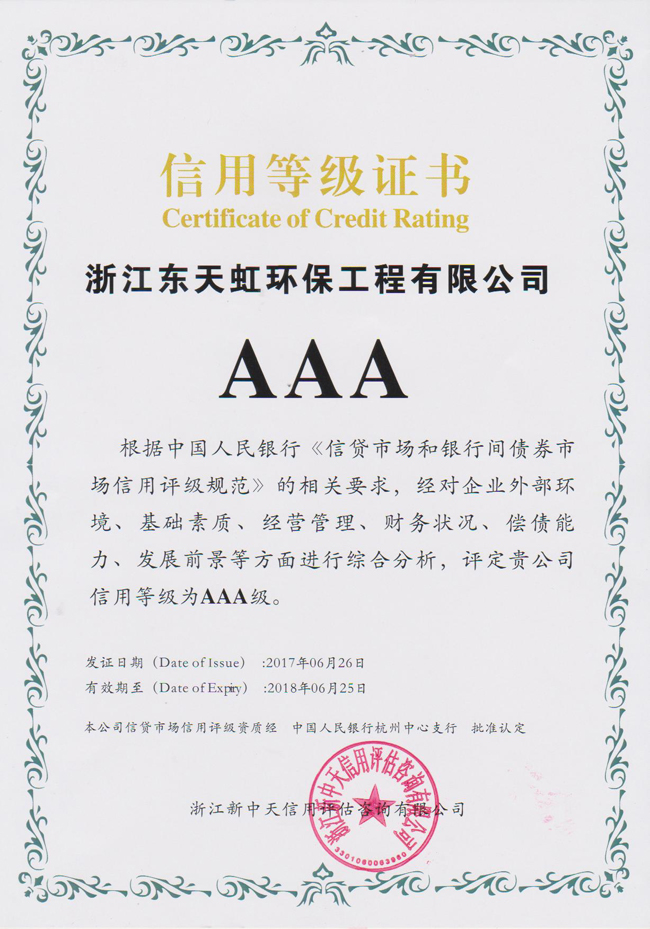 東天虹獲得AA級主體信用等級