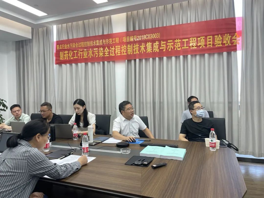 7月20日上午,在虹翔環保科技園,東天虹環保與浙江大學共同承擔的浙江省科技廳重點項目——“化工制藥行業水污染全過程控制技術集成與工程示范”(項目編號2018C03003)正在進行緊張的驗收工作。一陣熱烈的掌聲響起,標志著經過四年不斷研發和示范工程建設的項目順利通過驗收,并得到專家驗收組一致肯定。