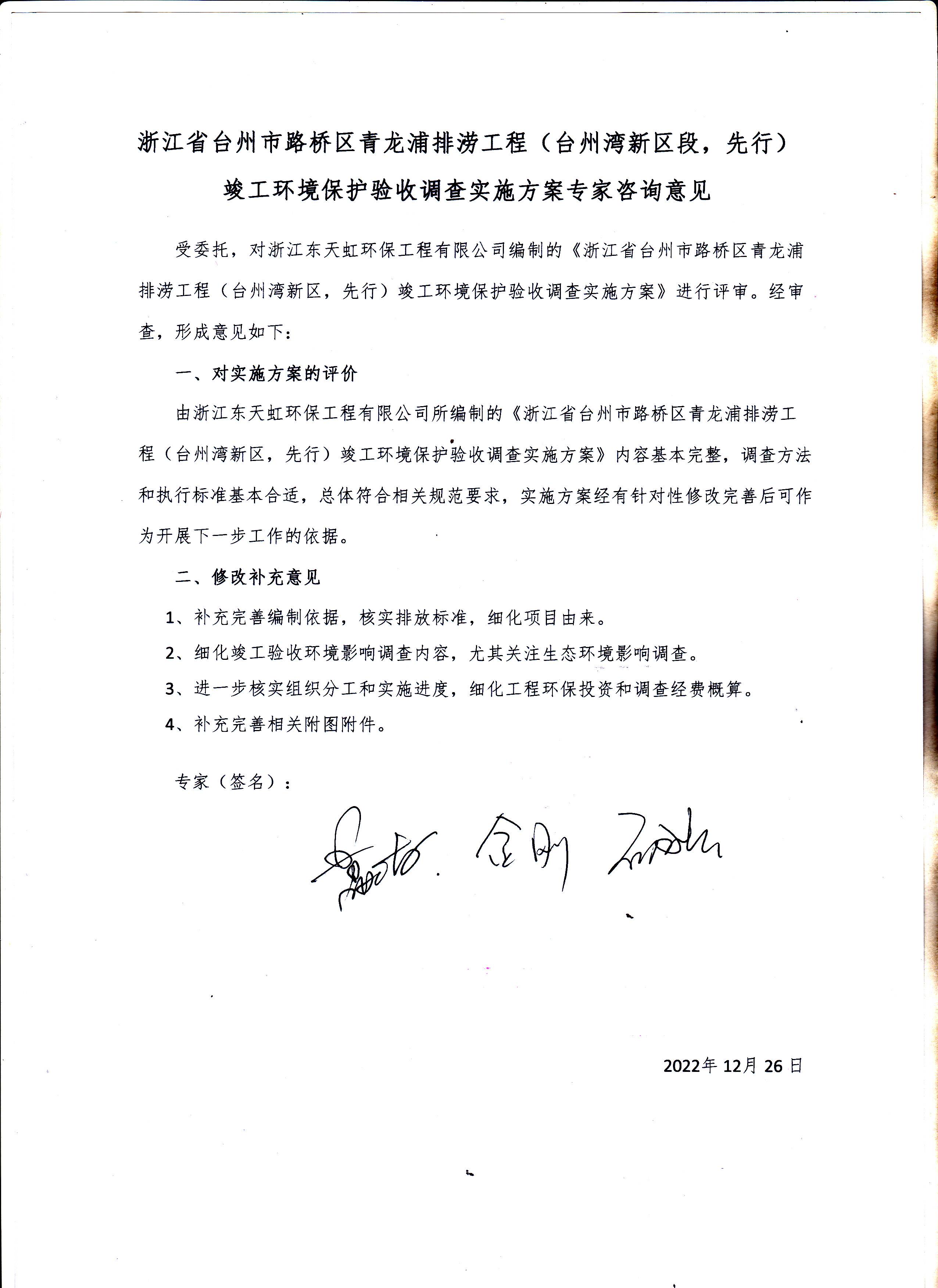 浙江省臺州市路橋區青龍浦排澇工程(臺州灣新區段,先行)竣工環境保護驗收—公示
