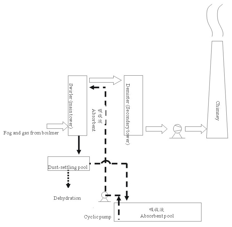 Technological process diagram for desulfurization of fog & gas